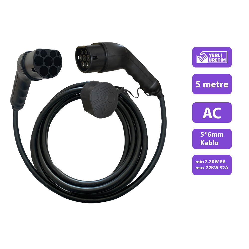 Bağlantı Tipi: Type 2 erkek (EV) / Type 2 dişi (Şarj istasyonu)
