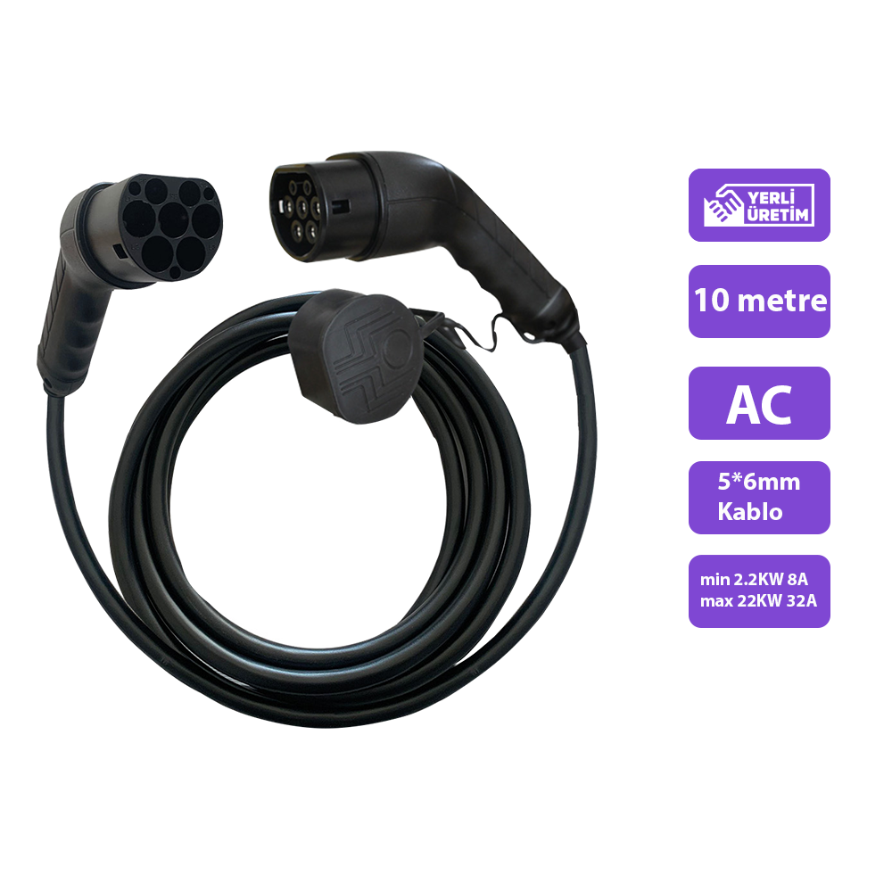 Bağlantı Tipi: Type 2 erkek (EV) / Type 2 dişi (Şarj istasyonu)