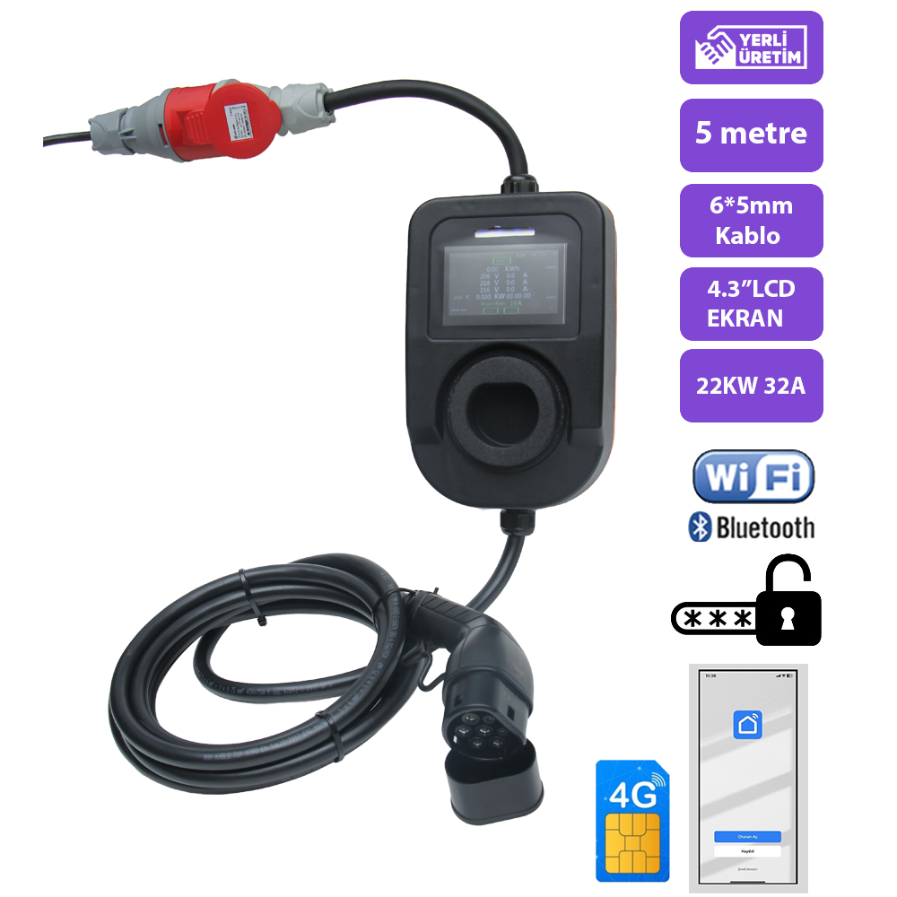 22 kW (32 A - 3 Faz), 22 kW (32 A - 3 Faz) |