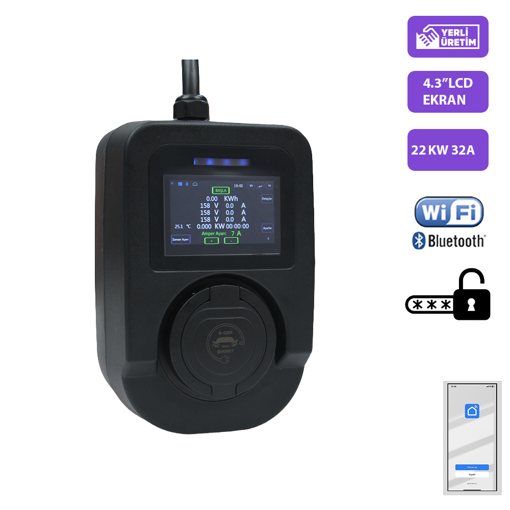 Amper ve durum göstergesi: Orta kısım LCD Ekran ve Mobil Uygulama aracılığıyla okunabilir