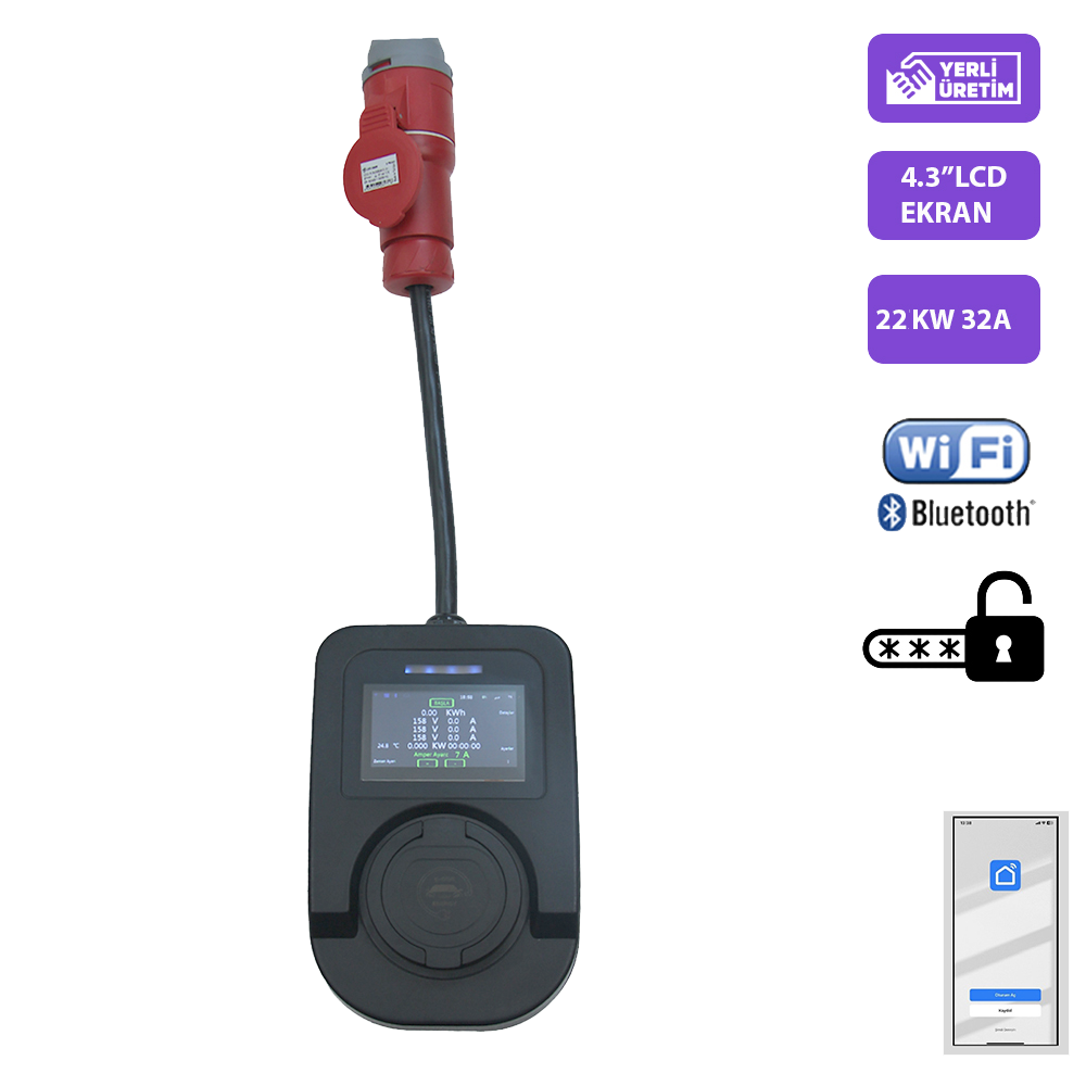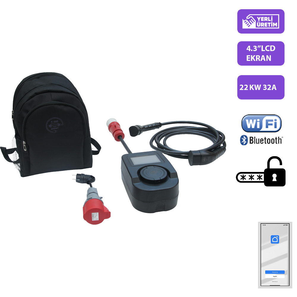 QSR-22kW / 32A portatif şarj cihazı, elektrikli araçlar için yüksek güçlü ve taşınabilir bir şarj çözümüdür. 22kW gücü sayesinde üç fazlı elektrik altyapısında çalışarak aracınızı 2–4 saat içinde hızlı bir şekilde şarj edebilir. Kompakt ve ergonomik tasarımıyla kolay taşınabilir, evde, iş yerinde veya yolculuk sırasında güvenle kullanılabilir. Gelişmiş güvenlik özellikleri ve dayanıklı yapısıyla kullanıcıya pratik ve güvenilir bir şarj deneyimi sunar.
