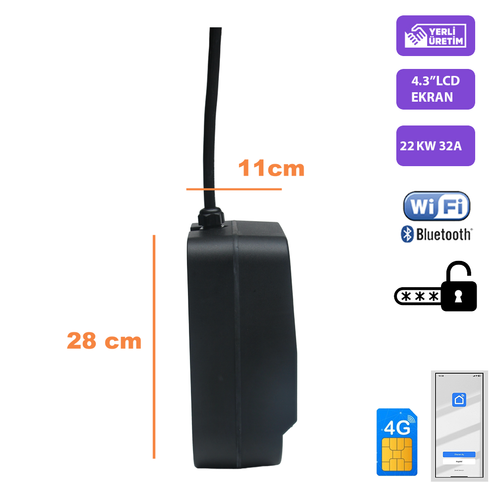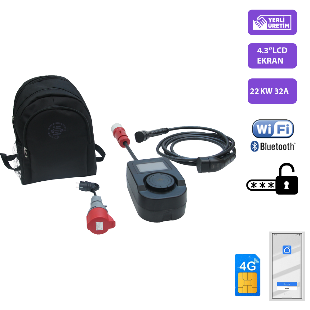 QSR-22KW /32A/ 4G/-Portatif Şarj Cihazı ( 5 Kullanıcı 1 Cihaz )